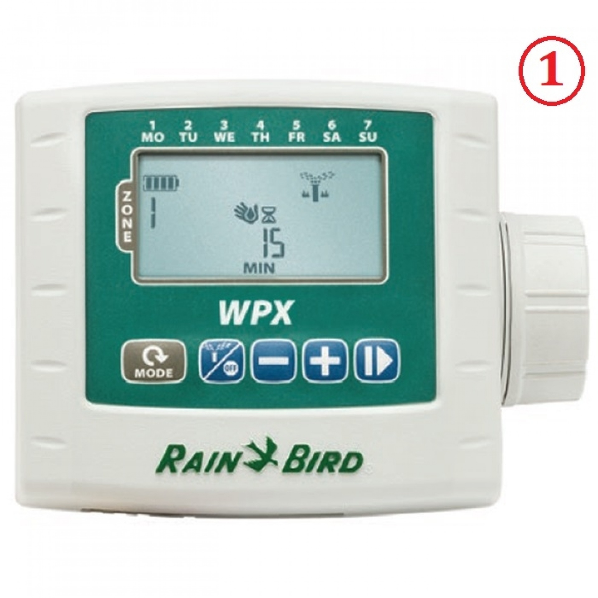 Funkce RAIN DELAY vyradí zavlažování na interval 1-15 dní 9V TBOS Solenoid