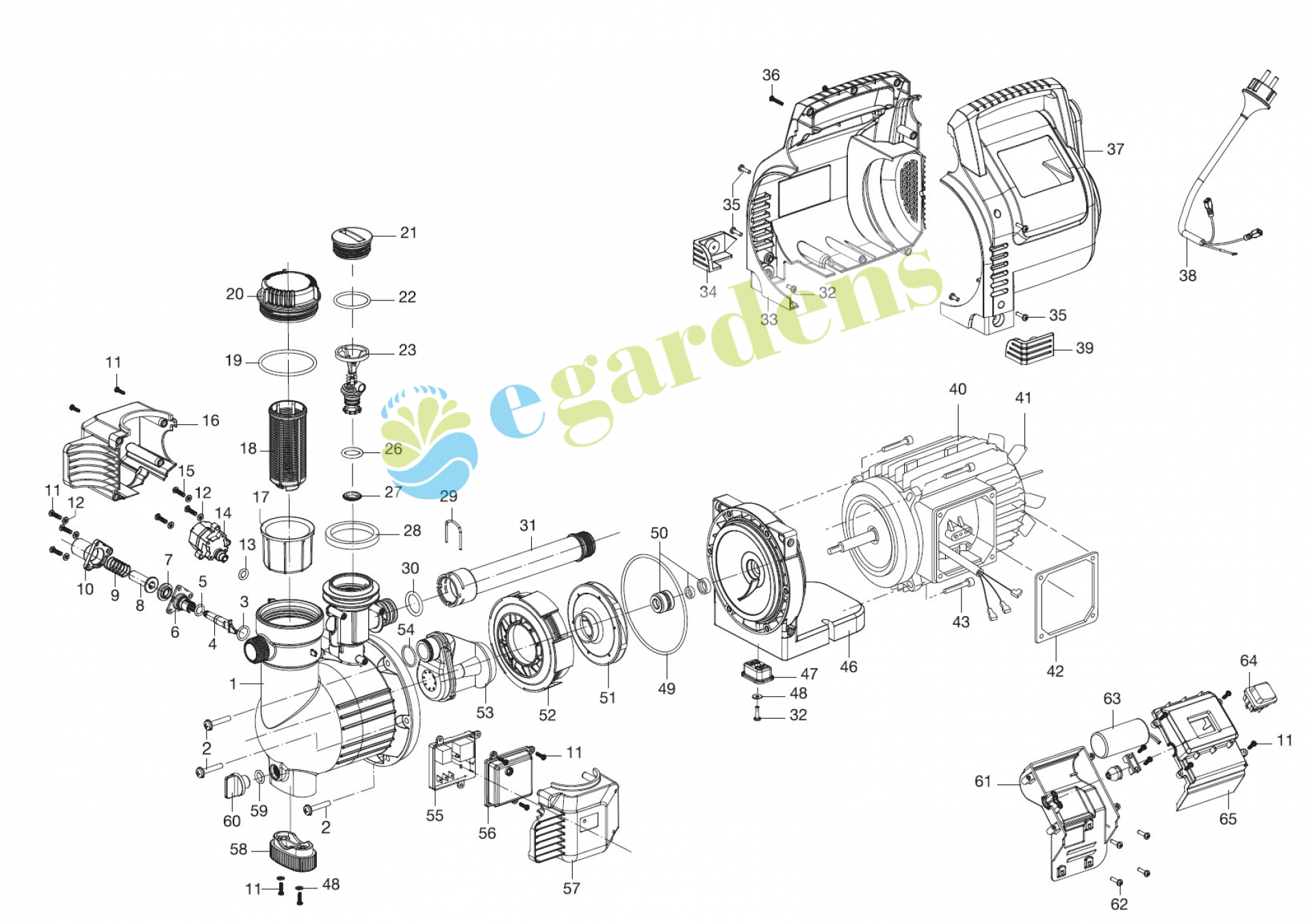 Automatické využívání užitkové vody - k zavlažování zahrady nebo použití v domácnosti.Kondenzátorový motor s ochranným tepelným spínačem - bezúdržbový.Jmenovitý výkon: 800 W